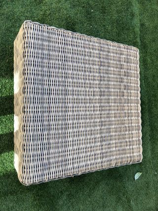Mesa o puff de exterior de ratán sintético. Perfecto estado. Se puede usar de mesa o de asiento adicional. Medidas: 75 x 75 cms No se envía