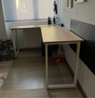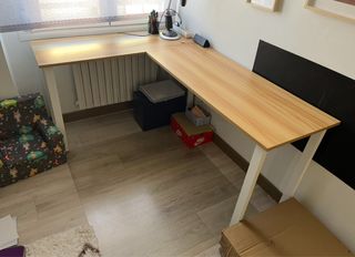 Escritorio de madera en L