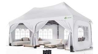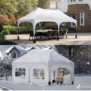 Carpa de exterior Vounot en color blanco. Ideal para eventos o para crear un espacio adicional. - Estructura plegable. - Cubierta de tela resistente. - Ventanas con diseño de arco.