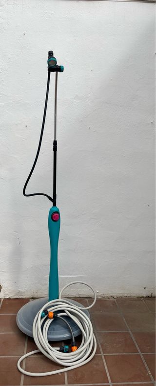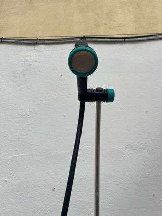 Ducha solar para exteriores, ideal para tu jardín o terraza. Fácil de instalar y usar. - Base estable. - Manguera enrollada incluida. - Cabezal ajustable.