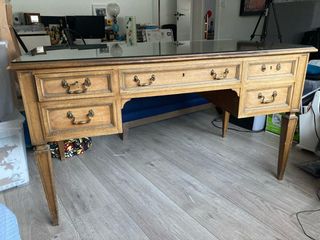 Escritorio vintage madera y cristal
