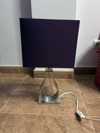 Elegante lámpara de diseño moderno, perfecta para cualquier mesita de noche o escritorio. - Base y estructura en metal plateado. - Pantalla cuadrada en tono morado. -Bombilla LED. 🚚 📦 Envío en 24 horas