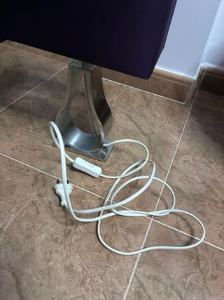 Lámpara moderna de mesa morada y plateada