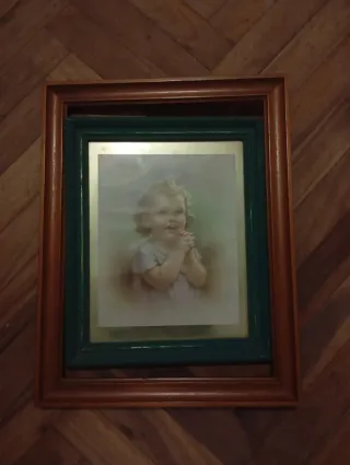 Cuadro vintage niño rezando y marco
