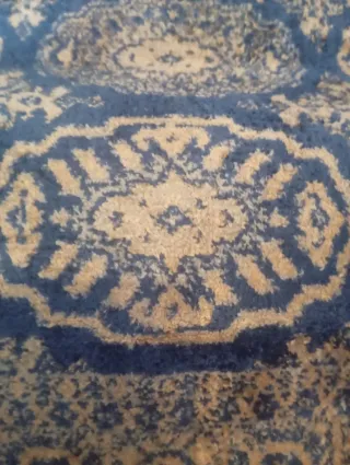 Elegante alfombra de pasillo con un diseño vintage que aporta un toque clásico a tu hogar. Sus tonos azules y beige combinan fácilmente con diferentes estilos de decoración. -necesita plancha, en condiciones inmejorables, de buena calidad, reverso rigido - Diseño alargado, ideal para pasillos o recibidores. - Patrón central con motivos ornamentales. - Bordes decorados con un grecado.