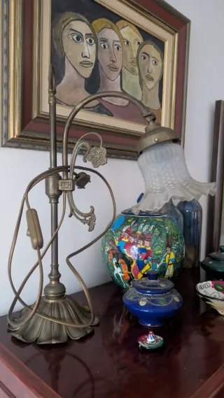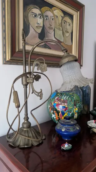 Lámpara de bronce con tulipa de cristal tallado