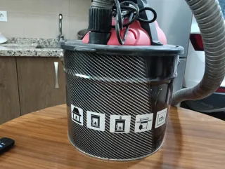Aspirador de cenizas con una capacidad de 17 litros. - Cubo metálico con acabado imitación carbono. - Manguera flexible.
