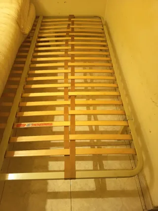 Somier de Pikolin en buen estado, listo para usar. - Medidas de 150cm. - Estructura metálica. - Láminas de madera.