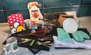 -3 x manteles nuevos grandes talla 3 en blanco y negro NUEVOS. -1 x delantal divertido A ESTRENAR. -1 x manopla para horno NUEVA. -6 x platos de postre muy originales, se entrega en caja de embalaje original. NUEVOS. -1 x taza con mango en forma de vaca, PERFECTO ESTADO. -3 x tenedores de postre. -3 x cucharillas de postre. -3 x cuchillos de untar. -2 x manteles individuales reversibles en color negro y gris. -2 x manoplas de toalla para secar vajilla, PERFECTO ESTADO. REGALO CON EL LOTE 2 x tazas, un mechero, una varilla de silicona, una caja decorativa de metal y utensilio. ENTREGA EN GLORIETA MARQUÉS DE VADILLO O ENVIO