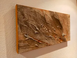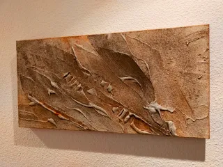 Precioso cuadro abstracto con relieve y textura. - Tonos beige y marrones. - Base de madera. - Medidas: 60x30