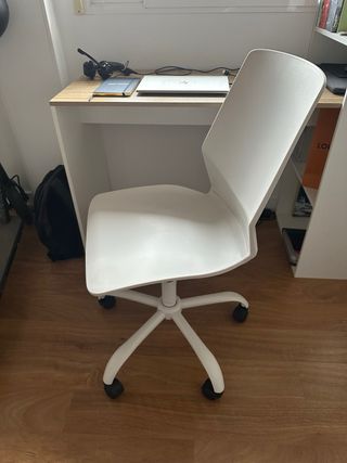 Silla de escritorio con un diseño moderno y ergonómico. Su asiento contorneado ofrece comodidad para largas jornadas de trabajo o estudio. - Base con ruedas para fácil movilidad. - Estructura resistente.