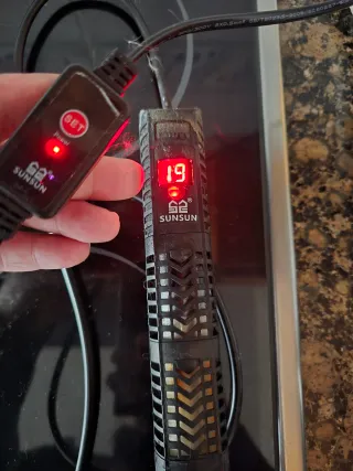 Calentador para acuarios de la marca SUNSUN. Muestra la temperatura actual en su pantalla digital. ( precio por separado ) hay 3 - Pantalla digital LED. - Botón SET para ajuste. - Indicador de Power.