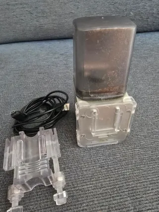 Comedero automático para acuarios, ideal para mantener a tus peces alimentados. - Incluye soporte transparente con tornillos. - Cable de alimentación USB.