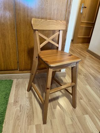 Taburete infantil de madera, perfecto para que los más pequeños lleguen a la mesa cuando ya no necesitan la trona - Diseño robusto y seguro. - Acabado natural de la madera.