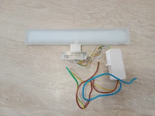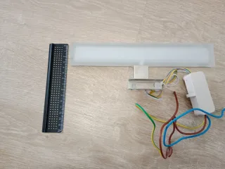 Lámpara lineal para espejo de baño. - Diseño moderno y elegante. - Combina cristal, metal y plástico. - Acabado en plata y blanco.