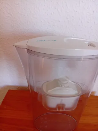 Jarra para filtrar agua de la marca Aquanatur. - Color blanco con detalles en azul. - Fabricada en plástico.