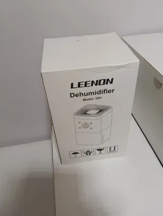 Deshumidificador LEENON, modelo D01. -Nuevo sin abrir - Diseño compacto y moderno. - Indicador de nivel de agua. - Símbolos de manejo y transporte.