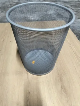 Papelera de malla metálica, ideal para tu escritorio u oficina. Su diseño abierto facilita el acceso y la ventilación. - Forma cónica. - Base sólida.