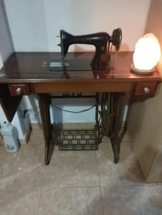 Máquina de coser antigua de la marca Alfa, un clásico para tu hogar. - Diseño vintage. - Estructura de madera y metal.