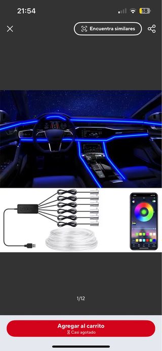 Kit de luces LED para crear ambiente en el interior de tu coche. Incluye un mando a distancia y una app para controlar los colores. Volkwaguen golf audi toyota etc - Múltiples opciones de color. - Control por app móvil. - Alimentación USB. LAS VENDO PORQUE NOSE MONTARLAS