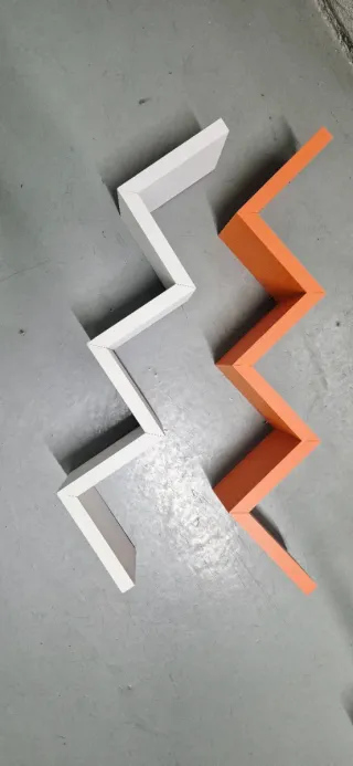Conjunto de estanterías con un diseño moderno en forma de zigzag. Son perfectas para añadir un toque decorativo y funcional a cualquier espacio. - Diseño en zigzag. - Combinación de colores vibrante.