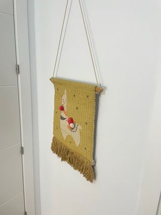 Adorno de pared para colgar, con diseño de llama y flecos en la parte inferior. - Colgante de madera. - Medidas: 30 x 50 cm