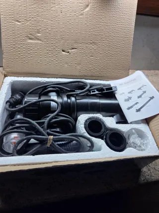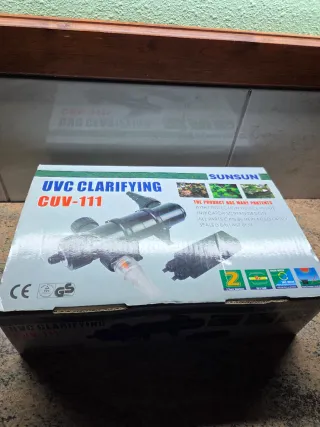 Filtro UV para estanques, ideal para mantener el agua clara. - Diseño compacto y fácil de instalar. - Incluye todos los accesorios necesarios para su montaje.