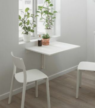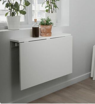 Mesa plegable de pared NORBERG en color blanco. Ideal para optimizar el espacio. - Medidas: 74x60 cm. - Diseño funcional.