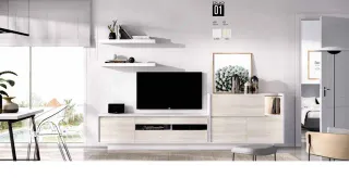 Nueva colección de Salones RMB. MEDIDA DE LA COMPOSICIÓN: 298 cms x 180 cms. Colores de la composición: Blanco poro / Finés. Está formada por : 1 Bajo de 1 puerta + cajón DVD 178 DR F45. 1 Aparador de 2 puertas + hueco cristal + puerta abatible 120 izquierda F45. 2 Estantes de pared oculto 92 5,5. Opción iluminación + 35 EUR. Transporte y montaje en Barcelona incremento de 95 EUR. Posibilidad de elegir otras combinaciones de colores y medidas (consulte fotos en los muestrarios). Traiga sus medidas y adaptamos una solución a su espacio. NO ENTREGAMOS FUERA DE CATALUNYA. FINANCIAMOS HASTA 12 MESES SIN INTERESES. GARANTÍA DE 2 AÑO