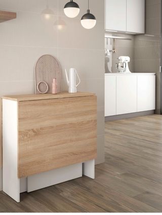 Mesa madera blanca y roble con alas abatibles