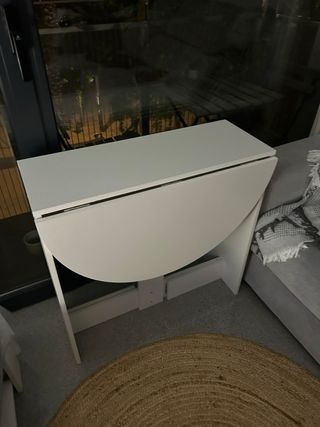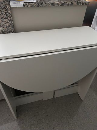 Mesa abatible blanca, ya montada y en buen estado. - Diseño moderno y funcional. - Estructura de madera robusta.
