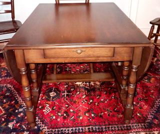 • Mesa de comedor muy sólido • Está en muy buen estado de conservación sin infección. • Viene con un cajón grande para guardar los manteles y un compartimento secreto. • Ideal para poder ubicar en cualquier espacio de la casa, especialmente en el salón comedor. • Las alas se pueden plegar una o dos según necesidad a través de la pata móvil que tiene en cada lado. • Se admiten ofertas Medidas mesa: • Largo de la mesa abierta: 196 cm • Largo de la mesa plegada: 94 cm • Ancho de la mesa: 120 cm • Altura de la mesa: 77 cm