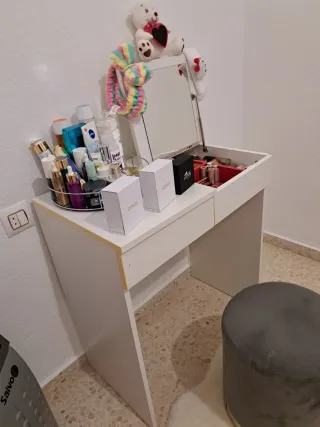 Tocador de Ikea con espejo abatible y cajones. - Diseño moderno y funcional. - Acabado en color blanco.