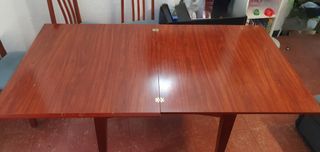 Se vende mesa de madera abatible con sus 4 sillas de muy buena calidad pero desgastadas lo que es la piel, si te lo llevas todo 50 euros.y si es individual es:mesa de madera solo 25 euros,y las sillas 10 euros cada una .
