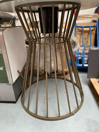 Elegante mesa alta con un diseño moderno y una base de metal. con champanera en el centro. - Forma redonda. - Acabado en color beige.