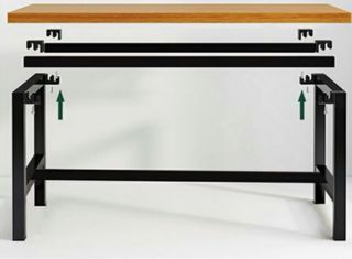 Mesa alta estilo bar con acabado en roble y estructura negra. Perfecta para espacios modernos. - Tablero de madera. - Patas de metal plegables.
