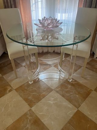 Elegante mesa redonda con sobre de cristal y base de metacrilato. - Diseño moderno y minimalista. - Materiales de alta calidad. - Ideal para salones o comedores.