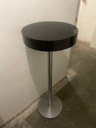 Mesa alta redonda ideal para un bar o espacio reducido. Es elegante y práctica. - Superficie redonda. - Base de metal plateada. - Acabado brillante.