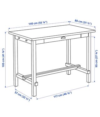 Mesa alta de madera de Ikea, en buen estado. - Medidas: 140cm (ancho) x 80cm (fondo) x 105cm (alto) - Altura hasta el suelo: 95cm - Dispone de un cajón.