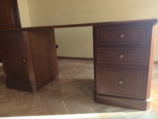 Preciosa mesa de despacho de madera, ideal para cualquier estudio u oficina. Es elegante y práctica. - Tiene un cajón con puerta y tres cajones. - Acabado de madera de alta calidad. - Diseño clásico y atemporal.