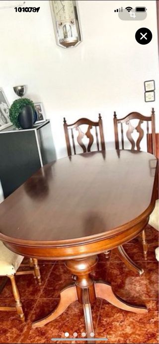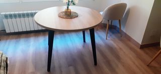 Mesa de comedor extensible, ideal para cualquier hogar. Su diseño moderno y funcional la hace perfecta para adaptarse a tus necesidades. 6 sillas a estrenar a juego. - Acabado en madera de alta calidad. - Diseño extensible para mayor versatilidad. - 1.60x0.9 metros cerrada y 2x0.9 metros extendida.