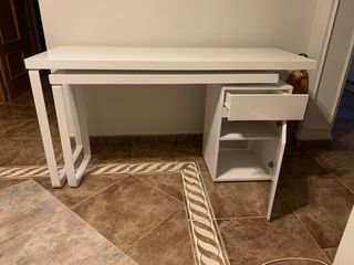 Mesas de oficina y cajoneras, de muy alta calidad. son indestructibles. Se vende en conjunto o por separado. - Mesa rinconera con rebaje está apoyada en cajonera, van juntas. 167 x 160 largos. 80 y 60 los anchos: 280€ - cajonera bajo mesa con ruedas: 54 largo, 41 ancho, 52 alto. : 100€ - Mesa rectangular: 160 x 80 anchos: 160€ - cajonera alta a ras de mesas: 80 largo por 47 ancho: 150€ Altura de todo: 72,50cm