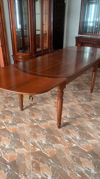 Elegante mesa de comedor antigua, fabricada en madera maciza. - Diseño clásico y robusto. - Capacidad para 6 u 8 comensales. Solo se acepta recogida en el domicilio, la persona que se lo lleve se encarga de todo. Precio negociable. Se recoge en Malaga, zona de Nueva Malaga / La chapa Largo abierta: 250