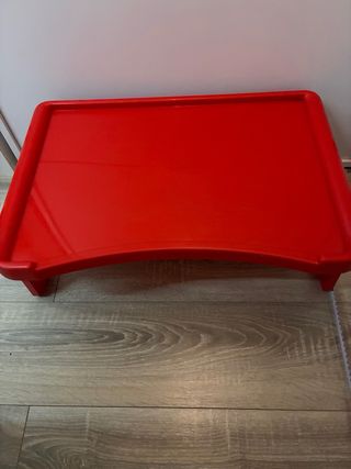 Bandeja de plástico de color rojo. - Diseño práctico y ligero. - Ideal para servir o como mesa auxiliar.