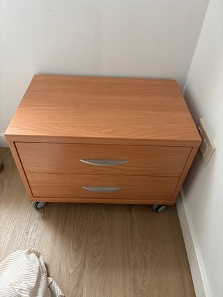 Mesita o cajonera auxiliar con ruedas, ideal para cualquier espacio. Se encuentra en muy buen estado. - Diseño moderno y funcional. - Fácil de mover y colocar. - Dos cajones amplios.