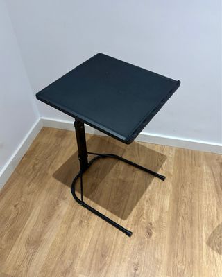 Mesa auxiliar práctica y versátil, ideal para usar en el sofá o la cama. Su diseño permite ajustarla a diferentes alturas. - Superficie de plástico. - Patas de metal.