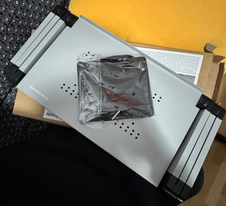 Mesa Plegable Auxiliar. Multiposición para ordenador portátil con bandeja para raton. - Estructura de metal, aluminio, plástico. - Color negro y plateado. - Diseño plegable y compacto para facilitar su transporte y almacenamiento. - Patas plegables para fácil almacenamiento. - Permite ajustar la altura e inclinación. - Superficie de apoyo amplia. - Incluye ventilador para refrigerar el portátil. Medidas: 53cm / 27cm / 5cm Comprada en Conforama. Completamente nueva, solo ha sido sacada de la caja para verla. Precio negociable! No hago envíos!