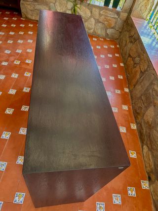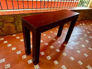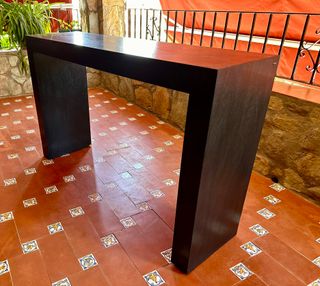 Mesa de diseño moderno y minimalista, ideal como consola, recibidor, mesa auxiliar o incluso escritorio. ✔️Fabricada en madera robusta con acabado en color oscuro elegante. ✔️Diseño recto y limpio, fácil de combinar con diferentes estilos de decoración. ✔️Muy estable y resistente. Estado excelente, apenas uso. Prestigioso fabricante de muebles "Moveme" Tambien dispongo de otra mesa auxiliar a juego con esta en mi perfil. Echale un vistazo por si te interesa ¡Contáctame si quieres venir a verlo o si tienes alguna pregunta!