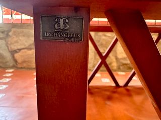Mesa auxiliar de madera maciza tropical con adorno de hierro No se hace envío.Recogida en Bormujos . Sevilla.