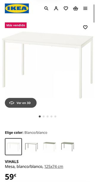 Se venden dos Mesas de comedor o auxiliar Vihals desmontadas. Precio por unidad - Diseño moderno y minimalista. - Tablero y patas en color blanco. - Medidas: 125x74 cm.
